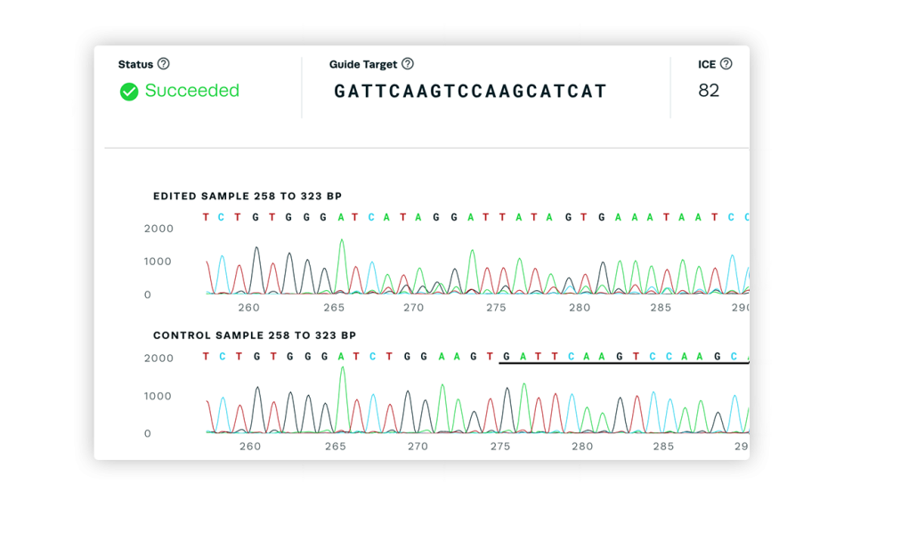 Analyze Sanger Data for NGS Quality Results: Accessing editing efficiency data for your experiments is now hassle-free with Synthego’s ICE analysis tool. Don’t let Next-Generation Sequencing (NGS) slow you down. ICE provides fast and accurate analysis of Sanger sequences, delivering NGS-quality results in seconds. Analyze up to 700 samples simultaneously and download your results with publication-quality figures, simplifying data interpretation and accelerating your research. Analyze your Sanger data now and experience the efficiency of ICE.